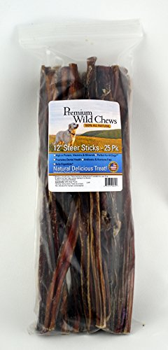 Premium Wild Chews is extremely proud to claim that our steer sticks are 100% Natural! They are completely Hormone and Antibiotic free. Sourced from grass-fed cattle, these products are healthy for your dog and will provide him/her with much needed Protein, Vitamins and Minerals. Premium Wild Chews Guarantee a quality product that we know will satisfy your dog! The BEST CHEW!! – Your dog needs to chew on objects in order to maintain their Dental Health. He/She would much rather chew on a Steer Stick than your couch! Your dog will LOVE the natural beefy aroma and it will occupy them for hours. Since this is a natural product, it is fully digestible and will not cause digestion problems. Perfect for All Dogs!! – Satisfaction Guaranteed! – Made in the USA – 100% All Natural. Affordable price.