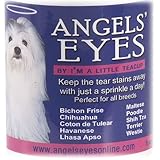 Angels' Eyes is the first product specifically developed for dogs to eliminate unsightly tearstains from the inside out. Angels' Eyes also helps to eliminate staining around the mouth and their coats due to licking. Other products are topical requiring high maintenance and yet will only remove the tear stains temporarily causing it to return worse than before. Angels' Eyes starts working before the tear stains begin and never adds food dyes or wheat which can have negative effects on your pet. Our bottles contain 30 gr net (1 oz) and 120 gr net for multiple dogs or cats' owners. Just sprinkle Angels' Eyes daily on regular food. After 3 months, reduce it to 4 times a week. After 6 months, reduce it further to twice a week. As you keep trimming the stained areas, the newly grown coat will be totally clear. The growth pattern of your pet's coat will determine if it will be completely tear stain free anywhere from 3 to 5 weeks.