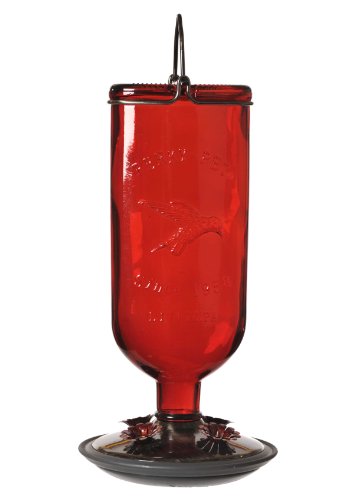 Perky-Pet 8109-2 Antique Glass Bottle Hummingbird Feeder-16-Ounce Capacity, Red