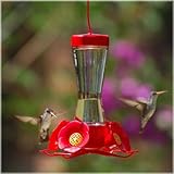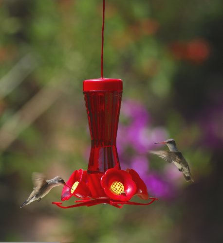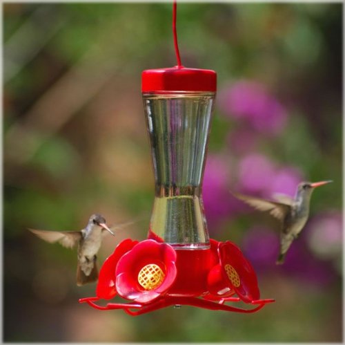 The Perky-Pet Pinch-Waist Glass Hummingbird Feeder features 4 feeding ports, a 4-way perch and holds 8 ounces of nectar. The feeder base is bright red to attract hummingbirds. Use the included hanger to hang it from a branch or hook. For best results, use the Perky-Pet Instant High Energy nectar. This specially blended nectar is easy to use, requires no boiling and stays fresh longer! The clear, shatter-proof glass reservoir makes it easy to monitor nectar levels and unscrews easily from the feeder base for quick cleaning and filling. The feeder may be cleaned with the Perky-Pet Cleaning Mop. Remember to clean your feeder at least twice a week, more often in very warm climates or seasons. We offer the finest quality in wild bird feeding products and accessories. Perky-Pet is the leading supplier of Wild Bird Feeders and Accessories. Perky-Pet Hummingbird Feeder models are designed to attract hummingbirds using bright red to lure them to the nectarletting you discover the beauty and fascinating behavior of the elusive hummingbird.