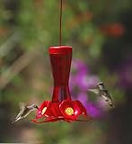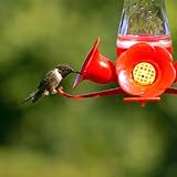 One of the most popular feeders on the market, the Perky-Pet Pinch-Waist glass feeder showcases the fascinating behavior and beauty of nectar-loving hummingbirds. The feeder features a bright red base with yellow bee guards, helping it attract hummingbirds while keeping bees away. The traditional bottom-fill feeder is also large enough for several hummingbirds at once, with four feeding ports and a removable four-way perch.