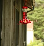 The feeder is easy to mount thanks to the included hanger, which suspends from nearly any branch or hook. To attract more hummingbirds, users should locate the feeder away from sun and wind. Sun may cause the nectar mixture to turn bad, while wind may swing the feeder around, causing the mixture to spill. Tying a red ribbon on the feeder wire or pole may also help hummingbirds find the feeder, as will adding a water source, such as a birdbath or bird waterer.