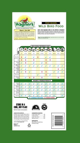 Four Season Wild Bird Food is blended for year round feeding and formulated to attract the widest variety of songbirds. This blend of sunflower seed, millet, cracked corn, and milo will attract your favorite songbirds year round – in the winter when natural seeds are scarce, spring and summer for hatchlings, and autumn to give energy to the migrating birds. Wagner’s Four Season Wild Bird Food is a great value and you are sure to keep them coming to your backyard for more. Trust your backyard birds to the experts at Wagner’s.