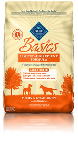 Blue Buffalo Small Breed Basics Limited Ingredient Formula Turkey & Potato Adult Dry Dog Food Getting back to basics is good advice for pet parents whose dogs show signs of being sensitive to some of the ingredients used in traditional pet foods. For these dogs, a careful selection of high-quality, natural ingredients is most important, and that's the way our animal nutritionists have formulated Blue BuffaloBasics. Blue Buffalo Basics is a healthy and holistic limited-ingredient diet formulated to minimize food sensitivities while maximizing the nutritional value that your dog will receive. Turkey, a high-quality protein not commonly used in dog food, is the first ingredient, followed by three easily-digestible and mild carbohydrate sources potatoes, rice & oatmeal. We've increased the nutritional value of Blue Buffalo Basics by adding a precise blend of veggies, fruit and micro-nutrients, which also helps in the digestive process. And, like every one of our Blue Buffalo dog foods, Blue Buffalo Basics has no chicken or poultry by-product meals and no artificial ingredients of any kind. For small breed dogs with food sensitivities, the ingredients they don't eat are just as important as the ones they do. That's why Blue Buffalo Basics does not contain any corn, wheat, dairy, soy or eggs while still providing a simply delicious and nutritious meal that your food-sensitive dog will thrive on. The nutritional benefits of Blue Buffalo Basics are further enhanced by the addition of our exclusive LifeSource Bits. A precise blend of antioxidants, vitamins and minerals selected by holistic veterinarians and animal nutritionists, LifeSource Bits include ingredients that have been shown to help strengthen your dog's immune system while supporting his life stage requirements.