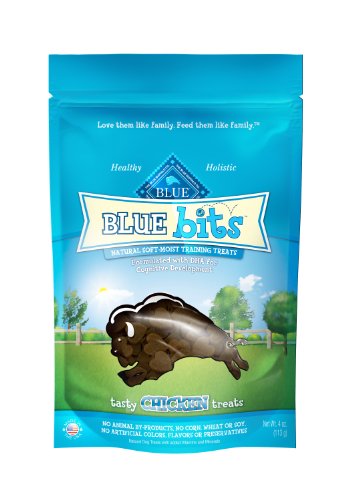 Blue Buffalo Chicken Bits are natural dog training treats that are soft, moist and extremely tasty. Blue Bits are a healthy and nutritious reward that your dog will enjoy. Size: 4-ounce.