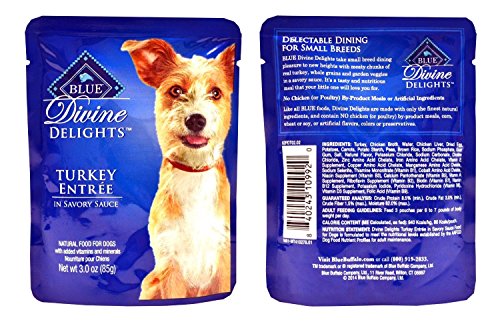 Blue Buffalo Divine Delights Wet Dog Food Variety Pack – 3 Flavors (Chicken, Turkey, and Beef) – 3oz Each (6 Total Pouches)