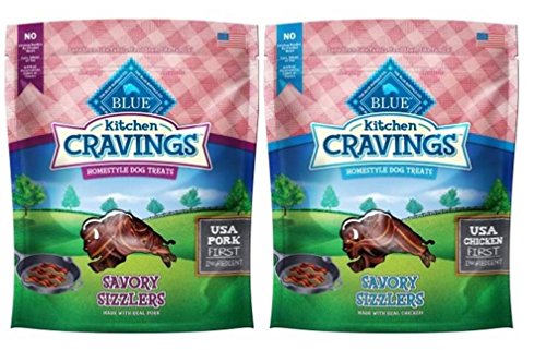 Blue Buffalo Kitchen Cravings Homestyle Treats For Dogs 2 Flavor Variety Bundle: (1) Blue Chicken Savory Sizzlers Kitchen Cravings Homestyle Dog Treats, and (1) Blue Pork Savory Sizzlers Kitchen Cravings Homestyle Dog Treats, 6 Oz. Ea. (2 Bags Total)