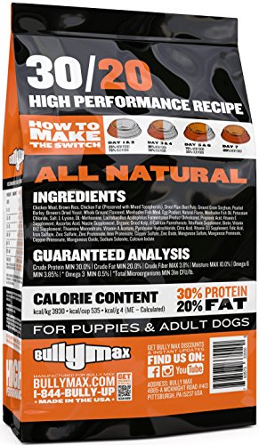 Bully Max 30/20 is a high-protein, high-calorie food formulated to fuel your dog's performance by giving him or her the energy they need to look and feel their best. The only 5-star rated performance dog food on the market Bully Max 30/20 has received a 5-Star rating from dogfoodadvisor.com. Dog food advisor is the most trusted third party review site for dog foods.