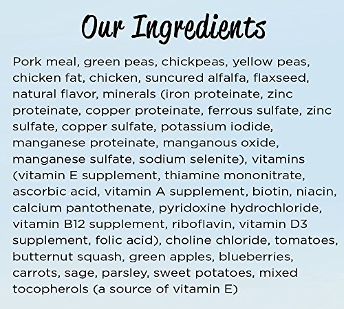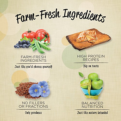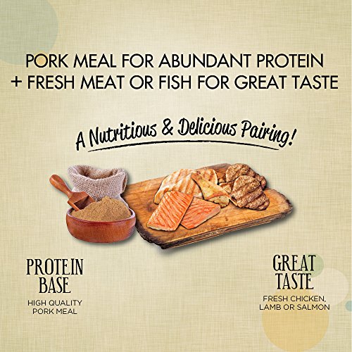 We pair the abundant protein of pork meal (ounce for ounce, pork has more protein than chicken or lamb) with great tasting fresh chicken, lamb, or salmon. Then we add a bountiful harvest of farm-fresh fruits and veggies for balanced nutrition. We've included lots of good things grown under the sun in our new dog and cat foods to provide your pet with all the great nutrition they deserve!