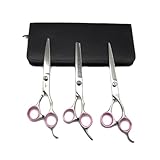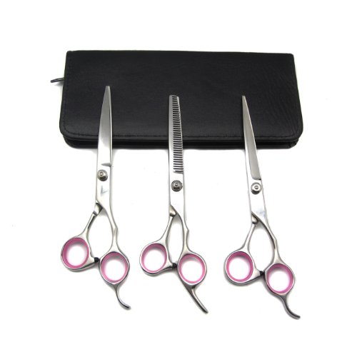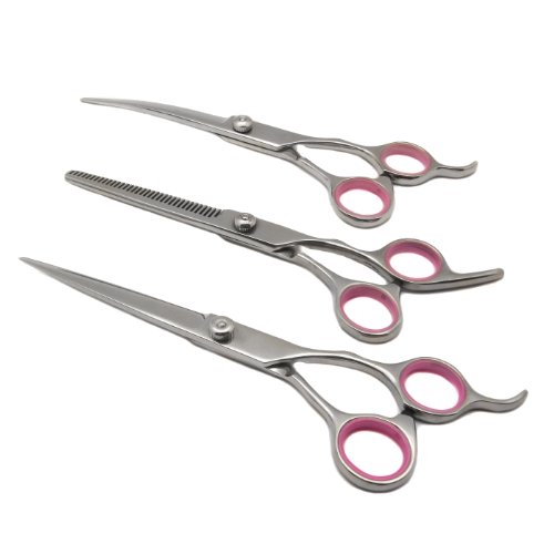 Alfie Pet by Petoga Couture – 3-Piece Dora Pet Home Grooming Kit – 7.5-Inch Cutting Scissor, 7.5-Inch Thinning Shear, Curved Scissor Set