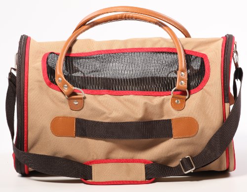 The Element Duffle is a lightweight, comfortable carrier that allows for easy transportation of your pet. This classically designed carrier features side entry, rear and side pockets for storage, mesh panels for ventilation, locking zippers, hand-carry straps, an adjustable, padded shoulder strap, a seatbelt / luggage strap and a luggage tag. It is approved for use on most major airlines and included in Sherpa's Guaranteed On Board® program. This carrier is intended for dogs and cats up to 8 pounds, and is 14 inches long, 9 inches high, and 9.5 inches wide. The faux lambskin liner is machine washable and the carrier is to be spot cleaned only. All Sherpa carriers are protected by a one-year limited warranty against manufacturer defects.