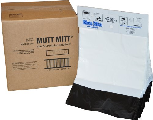 Fits outdoor Mutt Mitt dispensers • Each case contains 800 2-ply Mutt Mitts • 100 mitts stapled to 8 header cards • Designed with a handy flip tab • Made in USA.