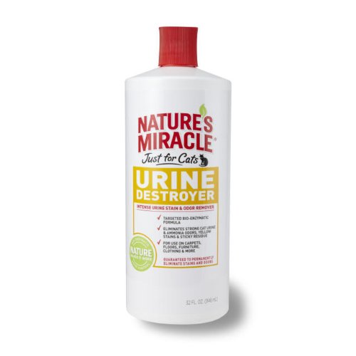Nature’s Miracle Just for Cats Urine Destroyer is specifically formulated to deal with your cat’s worst urine-based stains and odors. By incorporating some of the most advanced technologies in the industry—including our oxygen-infused, bio-enzymatic formula— Nature’s Miracle® Just for Cats™ Urine Destroyer works to target and eliminate cat urine and spraying-based incidents more effectively. This formula efficiently removes sticky residues that are often left behind in cat urine. Nature’s Miracle® Just for Cats™ Urine Destroyer may be used on cat urine or spraying-based stains and odors on carpet, hard surfaces, clothing, kennels, carriers, and litter boxes.