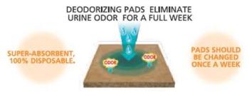 Absorbs one week’s worth of urine and odor even if used frequently. Even if a cat urinates in one place repeatedly, the urine will spread throughout the pad. Replace only once a week