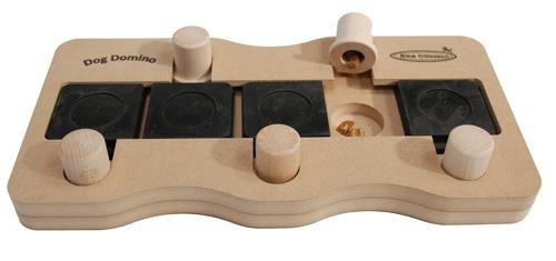 This clever maze is designed so that your dog must successfully slide the pegs through a winding channel and maneuver the pieces to the end of the path in order to reveal and retrieve his reward.