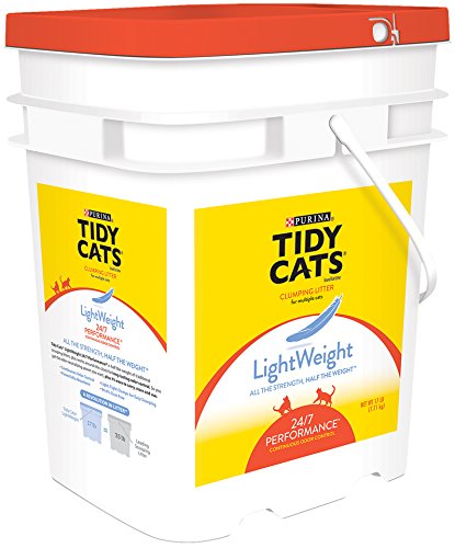 Tidy Cats Lightweight Clumping Litter for Multiple Cats 17 lb, Pail. With all the strength, Half the weight. Strong Clumps, Easy to clean up.