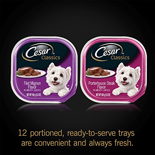Dogs with sophisticated palates will enjoy a rich culinary experience with CESAR Canine Cuisine Gourmet Wet Dog Food in meaty juices or in sauce. From large to small dogs, indulge your pampered pooch with poultry selections that make their mouth water and tail wag. CESAR Canine Cuisine Dog Food Variety Pack with filet mignon and porterhouse steak flavors delight connoisseurs with a tantalizing pat texture, and are enhanced with vitamins and minerals for complete and balanced nutrition. Served in convenient trays with no-fuss, peel-away freshness seals, CESAR Adult Dog Food makes mealtime easy. Our gourmet wet dog food also uses ingredients formulated to meet nutritional levels established by the AAFCO dog food nutrient profiles for maintenance.