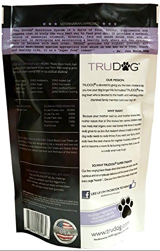 Go and grab the dog treats you have in your house right now and look at the ingredients. Surprised aren't you! Typical treats off of a large pet stores shelf can contain 20+ ingredients and some that you cannot even pronounce. Trudog makes it simple, we only use USA sourced and harvested Bison Liver! Freeze-dried raw to keep all the good stuff in-tact so that when your best friend needs a reward, you can feel awesome about giving it to him!