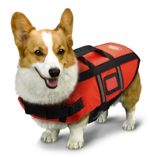 AKC Pet Life Jacket with Reflective Stripes, Lift Handle & Storage Bag, Small, Orange