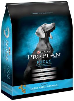 High-quality protein, including chicken as the first ingredient; Natural sources of glucosamine help support developing joints and cartilage; DHA from omega-rich fish oil helps nourish brain and vision development; Rich in antioxidants to help support a puppy's developing immune system; Calcium, phosphorus and other minerals help build strong teeth and bones. Animal feeding tests using AAFCO procedures substantiate that Pro Plan Focus Puppy Large Breed Formula provides complete and balanced nutrition for growth of puppies and maintenance of adult dogs.