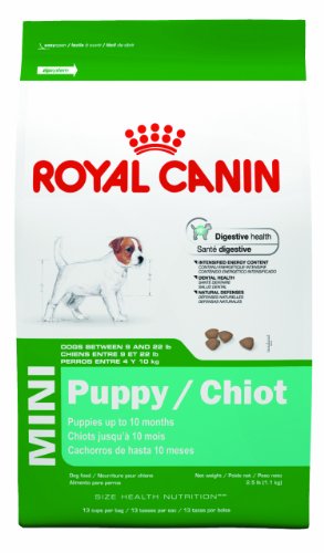 Royal Canin MINI Puppy helps support the puppy's natural defenses with a unique antioxidant complex, including lutein, vitamins E and C and taurine to avoid your small breed puppy's immune system being compromised as the initial immunity from its mother's milk fades away. MINI Puppy contains an exclusive combination of nutrients (such as highly digestible proteins and prebiotics) to help promote optimal digestion and contribute to a good stool quality. The high energy content found in this diet meet high energy needs during the growth period, accommodate digestive sensitivity and satisfies fussy appetites. The specialized kibble helps reduce dental plaque and limit tartar formation. Recommended for small breed puppies weighing up to 22 pounds up to 10 months. Size: 13 pounds.