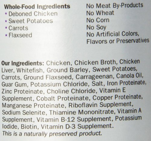 Water is an extremely important nutrient with respect to a dog's overall well-being. Formulated with the same whole food philosophy as our kibble — complete and balanced nutrition using only the finest ingredients — Wellness canned foods are an easy way to increase your dog's water intake. Wellness Chicken & Sweet Potato Recipe is an excellent source of high quality protein and essential fatty acids. Chicken & Sweet Potato Recipe is made with high quality chicken, free of added growth hormones and steroids, the most plentiful ingredient, because it is a delicious, digestible protein source. The sweet potatoes provide your dog with an excellent source of vitamins, minerals and beta-carotene. As a special treat or as part of your regular feeding, Wellness canned foods are yet another delicious way for your dog to eat healthy.