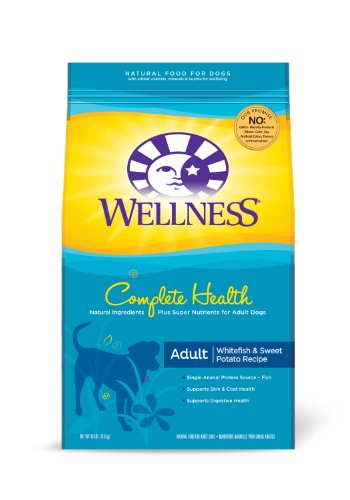 Whether you are looking for a food for your new puppy or for your long time companion, it is important to understand the benefits of feeding your dog the best recipe to meet his/her needs. Wellness® Natural Food for Pets offers a wide variety of foods for different life stages and special dietary needs. The Complete Health Whitefish & Sweet Potato Recipe is made with carefully chosen, authentic ingredients such as Deboned Chicken, Omega 6 and Omega 3 fatty acids, Fruits and Vegetables and does not contain Meat By-Products, Wheat, Corn, Soy or Artificial Colors, Flavors or Preservatives. Single Animal Protein Source (Fish) for sensitive stomachs and food intolerances Omega-rich to naturally maintain healthy skin and glossy coat Supports Digestive Health and Maximum Nutrient Absorption