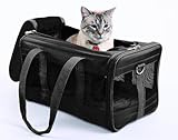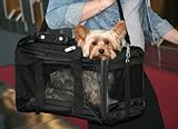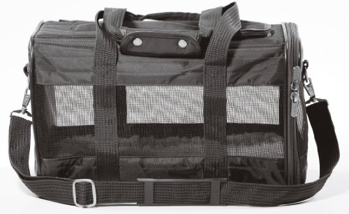 Locking zipper to prevent accidental escape. Mesh panels for ventilation, includes a seat belt security strap and shoulder strap. Top and side entry. bag can be spot cleaned. Removable machine washable comfort liner. Side storage pockets for leash and keys. safety strap to attach to luggage or car seat belt. Bag Dimensions 18 L x 10.5″ high x 11″ wide. bag weight 3.6 lbs. size medium all black with black trim. For pets up to 16lbs and 16″ in length and 10″ in height. please measure your pet before ordering your pet must fit into the carrier for you to consider the weight. Pets come in different shapes and sizes you must measure your pet. To measure for Length take tape measure from nape of neck or collar area to base of tail not including the tail this is your length. for height measure from floor to top of shoulder. remember pets must lay down in carrier this is not a carrier they stand up in. This carrier is airline approved. Please check with your airline to see if it meets size requirements as the airlines have different size requirements depending on type of plane etc”
