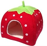 Strawberry Small Cotton Soft Dog Cat Pet Bed House S/m/l/xl (25x25x27cm))(Red, S)