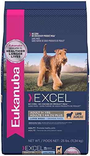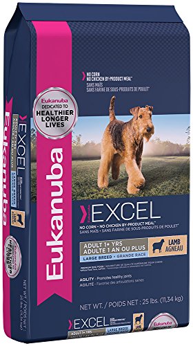 Your dog was born to excel. That's why EUKANUBA Dog Food offers a premium nutritional dog food to help your active dog reach their full potential. EUKANUBA Excel Adult Large Breed Dog Food With Lamb is made with real lamb as the first ingredient to promote strong, lean muscles for ideal body condition. This dog nutrition is formulated without corn and chicken by-product meal. Our premium dry dog food for large breed dogs also is formulated with calcium to promote strong bones and healthy joints. Your dog will love the savory taste of real lamb, and you will notice their soft, lustrous coat. EUKANUBA Dry Dog Food also features an excellent balance of fats, carbohydrates, vitamins, minerals and proteins to promote a healthy weight. For large breed dogs that are ready for any adventure, EUKANUBA PREMIUM Nutrition for Dogs can help them get there.
