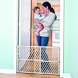 The position and lock gate helps parents keep their children safe from common household dangers. Not only is this classic pressure mount gate easy to install, it also helps prevent damage to your home because no hardware is required. Also, the locking bar is marked and notched for easy installation and re installation. Finally, the sturdy wood frame and plastic mesh are durable and secure leaving you with a feeling of assurance that your child is away from harm.