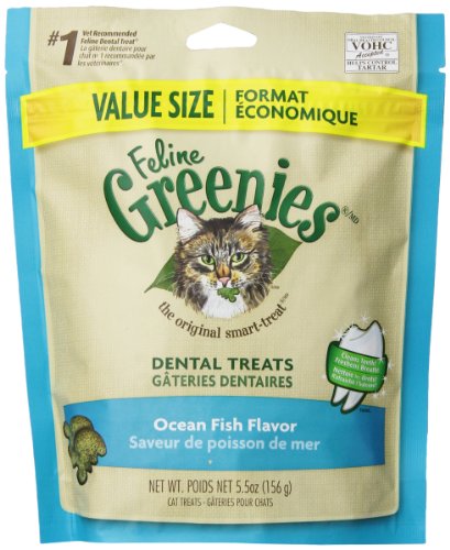 Feline greenies dental treats ocean fish value size, 5.5-ounce, cleans teeth, freshens breath, helps control tartar.