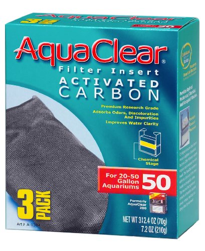 AquaClear 50 Activated Carbon Filter Insert improves water clarity for freshwater and marine aquariums. AquaClear 50 Activated Carbon Filter Insert provides superior adsorption qualities which eliminate odors, discoloration and impurities. It is designed to fit the AquaClear 50 Power Filter.