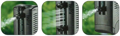 Fluval U3 Underwater Filter provides complete and efficient 3-stage filtration, including BioMax biological filtering, to create superior aquarium water quality. The U3 Filter includes practical and versatile features, making it ideal for application in fresh, marine and reptile environments. The filter provides the option of setting the flow output in 3 different positions, a key benchmark in underwater filtration. The adjustable 3-way flow control feature lets you position the water flow output to meet your specific needs. The Top Output setting provides maximum circulation and oxygenation, the Integrated Spray Bar setting provides a gentle, even flow for planted aquariums, and the Bottom Output setting is for deepwater agitation. The filter also has a convenient flip-top lid that allows quick and easy access to the filter cartridge for maintenance or replacement. The filter can be installed vertically against the aquarium wall to create currents or customized flow patterns; it can be placed horizontally in shallow water tanks; or it can be used to create decorative features, such as waterfalls.