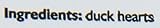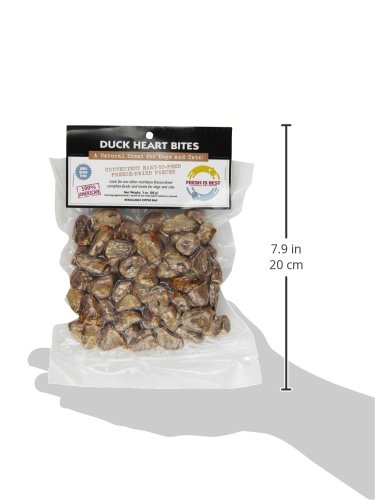 100-Percent USDA Duck Heart Human Quality Grain Free natural and Raw Ingredients Raised and Grown In the USA No fillers, salts, sugar, or artificial preservatives Healthy Snacks for both dogs and cats Contains the nutrition and flavor as raw meat.