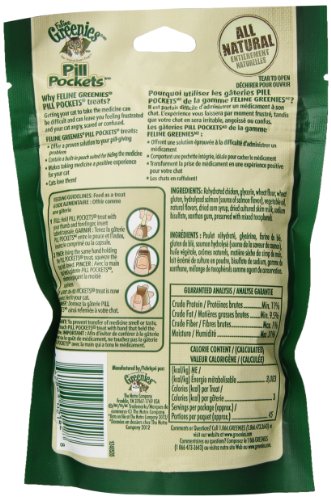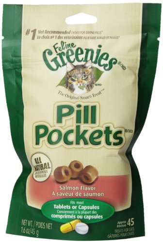FELINE GREENIES PILL POCKETS. Treats are 100% all natural tasty treats with a built-in pouch – ideal for hiding a tablet, capsule or liquid medication – so that most cats don't even notice there's medicine inside. They're the #1 veterinarian-recommended choice for giving pills.*.