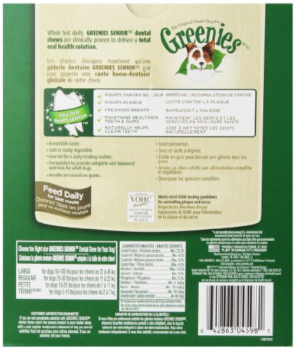 GREENIES SENIOR Canine Dental Chews are specially formulated for aging dogs, 7 years or older, and are the #1 veterinarian-recommented dental chews* that provide a total oral health solution.