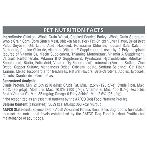 Hill's Science Diet Adult Advanced Fitness Small Bites Chicken & Barley Recipe Dry Dog Food, 38.5-Pound Bag