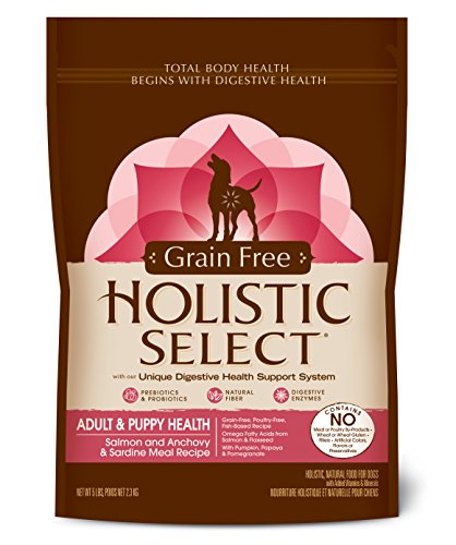 Holistic Select Grain Free Adult and Puppy Health Salmon and Anchovy/Sardine Meal Recipe, 5-Pound Bag