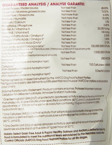 This holistic select grain free adult and puppy health salmon and anchovy and sardine meal dry dog food is formulated with a unique digestive health support system, including active probiotics, healthy fiber and digestive enzymes. When combined with other high quality, natural ingredients, this recipe supports the absorption and utilization of vital nutrients throughout your dog's entire body. Your dog will look and feel healthy from the inside out.