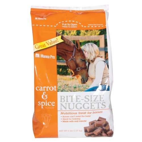 Manna pro 0092944236 carrot and spice horse treats 5 lb are bite size nuggets to reward, encourage and show that you care. nutritious, healthy treats are perfect for training. horses can't resist the taste. use to encourage bonding and good behavior. carrot and spice flavored.