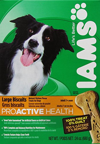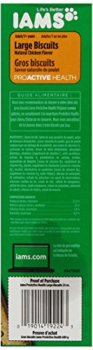 You can reward your dog with outstanding nutrition in every tasty bite of Iams Original Formula Large Biscuits. Made with essential vitamins and minerals, our biscuits are formulated using high-quality ingredients similar to those in Iams Chunks® or MiniChunks™ to ensure that you are giving your dog a nutritious treat that you can feel good about. The crunchy texture helps control tartar to promote clean teeth, fresh breath and healthy gums. Our biscuits are made from real chicken protein to give your dog the great taste he loves and the nutrition he needs.