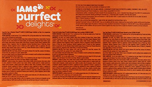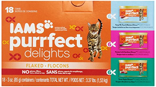 Iams Purrfect Delicacies use high quality protein like salmon, tuna, chicken, and turkey for the variety your cat will love, with no added gluten, or artificial flavors, so you can feel even better about feeding it to him.