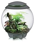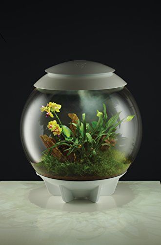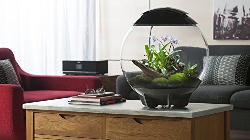 The perfect combination of nature and technology, the biOrb AIR is a modern take on a classic terrarium. Replicating nature's daylight, air movement and humidity, creating the perfect automated growing environment for tropical plants. The biOrb AIR uses treated sterilized coir compost as the growth media to cultivate the plant roots. The coir compost is placed on top of a capillary matt that draws water up to the compost from a small water reservoir in the base. The capillary action prevents the plant roots from soaking and rotting. Natural daylight is not necessary as the lighting is arranged in a six LED array at the top of the sphere. This emits the perfect light output for encouraging natural growth and prevents plants bending towards a single light source. The light also works on an automatic 24 hour cycle, simulating sunrise, daylight, sunset and night time. To discourage stagnation and condensation within the biOrb AIR, a constantly running fan recycles the air through a replaceable carbon filter. A small amount of fresh air is regularly introduced as part of the circulation process. To maintain the humidity within the micro-climate, water is added using an ultrasonic mister mounted in the top water reservoir. The mister generates the 'swirling' water vapor if the humidity drops below 75% RH.