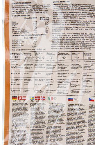 K9 Natural Freeze Dried is made with meat (derived from grass-fed, ranch raised animals), blood, bone, tripe, liver, heart and kidney plus vegetables, fruit, egg and green lipped mussel. K9 Natural is a nutritionally sound and species appropriate diet which can therefore be fed to dogs at any stage of life: from puppies to seniors, during pregnancy and lactation. It is also suitable for any breed of dog, from toy to giant.