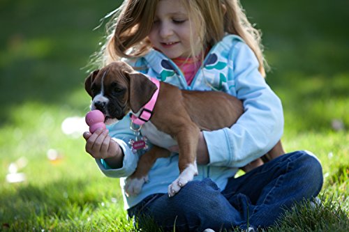 KONG Puppy is made with our exclusive teething rubber formula designed for puppies up to nine months. Veterinarians and trainers recommend stuffing the KONG Puppy with healthy treats to aid in crate training, decreasing separation anxiety, promoting proper chewing behavior and deterring misbehavior for happy, healthy puppies. Our super-bouncy, pink or blue natural rubber compound is unequaled for dogs who like to chew.