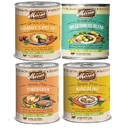 Merrick Grain Free 13.2 Oz Classic Canned Dog Food Variety Bundle #1 – 4 Flavors (Grammy's Pot Pie, Turducken, Wingaling, Wilderness Blend – 3 of each flavor)