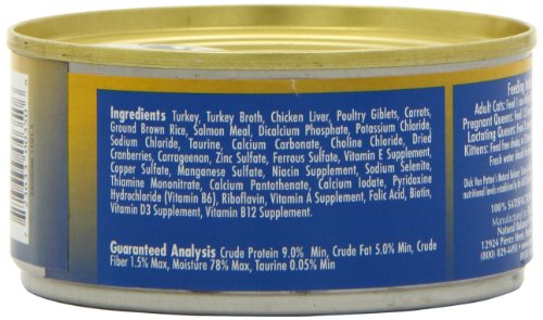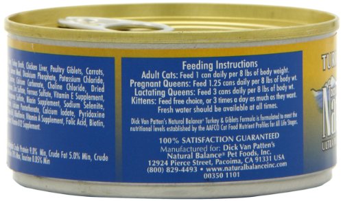 Natural Balance Canned Cat Food is a complete and balanced premium cat food. Contains cranberry powder as well, which is great for maintaining a healthy urinary tract. All Natural Balance pet foods have been developed by veterinarians and animal nutritionists. Turkey is the number one ingredient!
