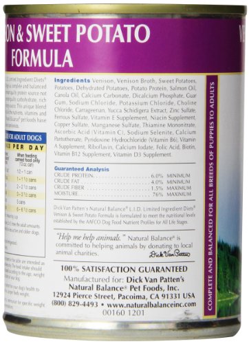 Natural Balance Canned Dog Food, Grain Free Limited Ingredient Diet Venison and Sweet Potato Recipe, 12 x 13 Ounce Pack