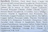 Guaranteed Analysis: Crude Protein 21.0% minimum Crude Fat 10.0% minimum Crude Fiber 3.0% maximum Moisture 10.0% maximum Calcium 1.0% minimum Phosphorus 0.8% minimum Docosahexaenoic Acid (DHA)* 0.01% minimum Omega-6 Fatty Acids* 1.7% minimum Omega-3 Fatty Acids* 0.5% minimum *Not recognized as an essential nutrient by the AAFCO Dog Food Nutrient Profiles. Dick Van Patten's Natural Balance L.I.D. Limited Ingredient Diets Potato and Duck Formula for Dogs is formulated to meet the nutritional levels established by the AAFCO dog food nutrient profiles for all life stages.